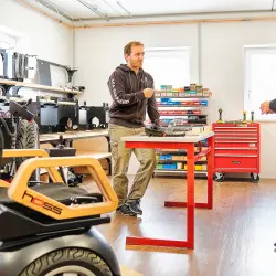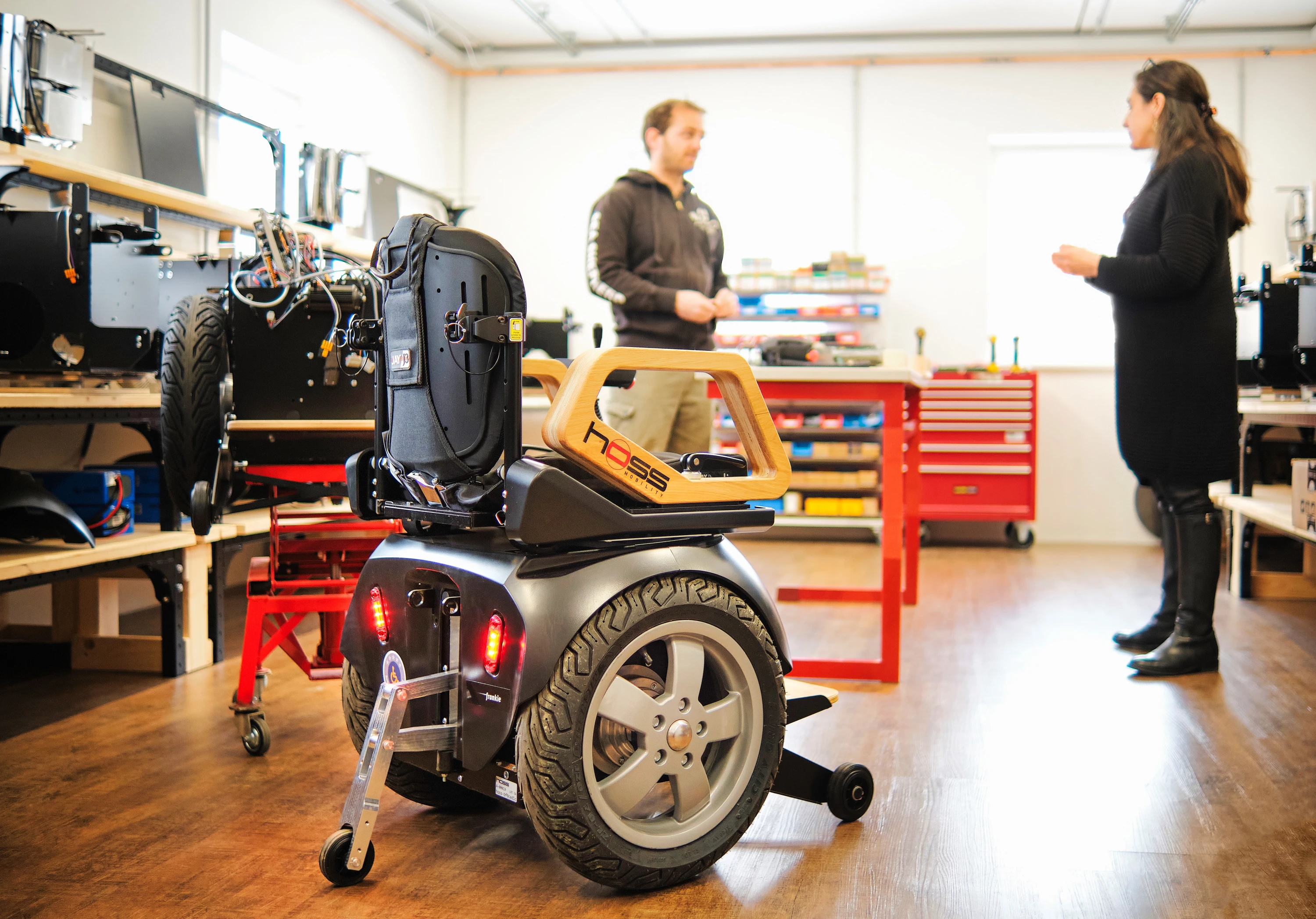 Es sind die kleinen Dinge, die Probleme machen: uneben verlegte Pflastersteine, Straßenbahnschienen oder hervorstehende Kanaldeckel. Menschen, die auf einen Rollstuhl angewiesen sind, kennen diese Herausforderungen. „Es sind nicht Stiegen oder Stufen, es sind genau diese vermeintlich kleinen Unebenheiten, die das Vorwärtskommen mit einem klassischen Rollstuhl erschweren“, versichert Lukas Rigler. Und das weiß er selbst erst, seit er einen ungewöhnlichen Käufer für seinen in die Jahre gekommenen Segway fand: Einen jungen Mann, der auf Grund von Multipler Sklerose (MS) auf einen Rollstuhl angewiesen ist und den Segway zu einem Rollstuhl umbauen wollte. Mit dem Ein-Achser hoffte er die kleinen alltäglichen Hindernisse leichter bewältigen zu können. Und damit war eine Geschäftsidee geboren und einiges an Überraschungen vorprogrammiert. „Naiv muss man sein, sonst geht es nicht“, fasst Lukas Riegler lachend die Gründung seines Unternehmens Hoss Mobility GmbH zusammen, das er 2017 gemeinsam mit einem Partner aus der Taufe hob. „Wir haben zehnmal länger gebraucht und zehnmal mehr Geld benötigt, als wir dachten“. Die Idee: ein Ein-Achs-Rollstuhl mit selbstbalancierendem Antrieb – eine komplette Neuentwicklung – letztendlich ohne Drittgerät als Basis. Eine coole Sache, die den Nutzern eine neue Mobilität garantiert und die Wendigkeit eines Indoor-Gerätes mit der Geländegängigkeit einer Offroad-Maschine verspricht.